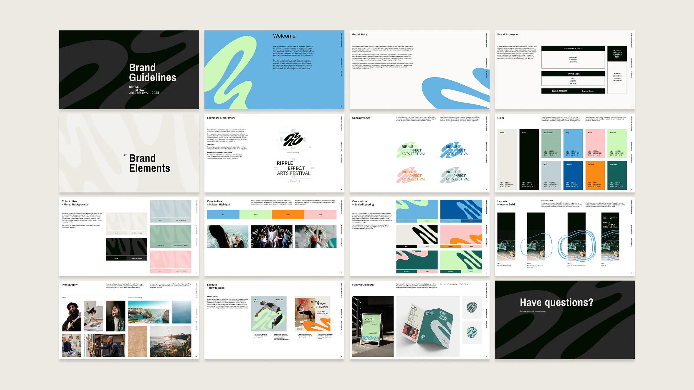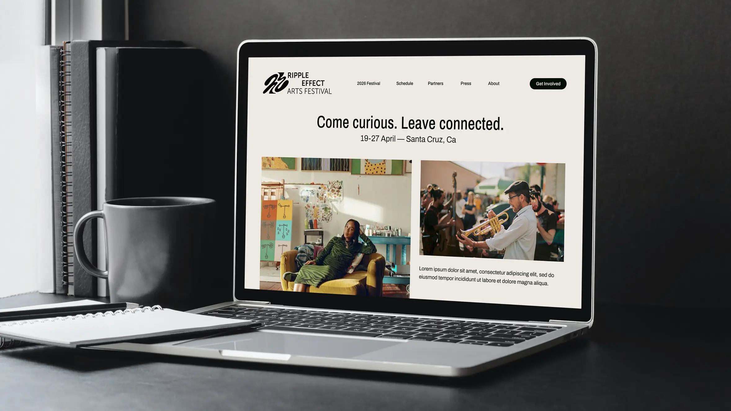 Sköna built a system designed to connect, not contain. We developed the brand essence of Creative Current to reframe the festival as a living network where participation builds energy and collaboration compounds impact. Ripple Effect becomes the connective infrastructure that links artists, institutions, and neighborhoods, and encourages audiences to ‘be curious’.