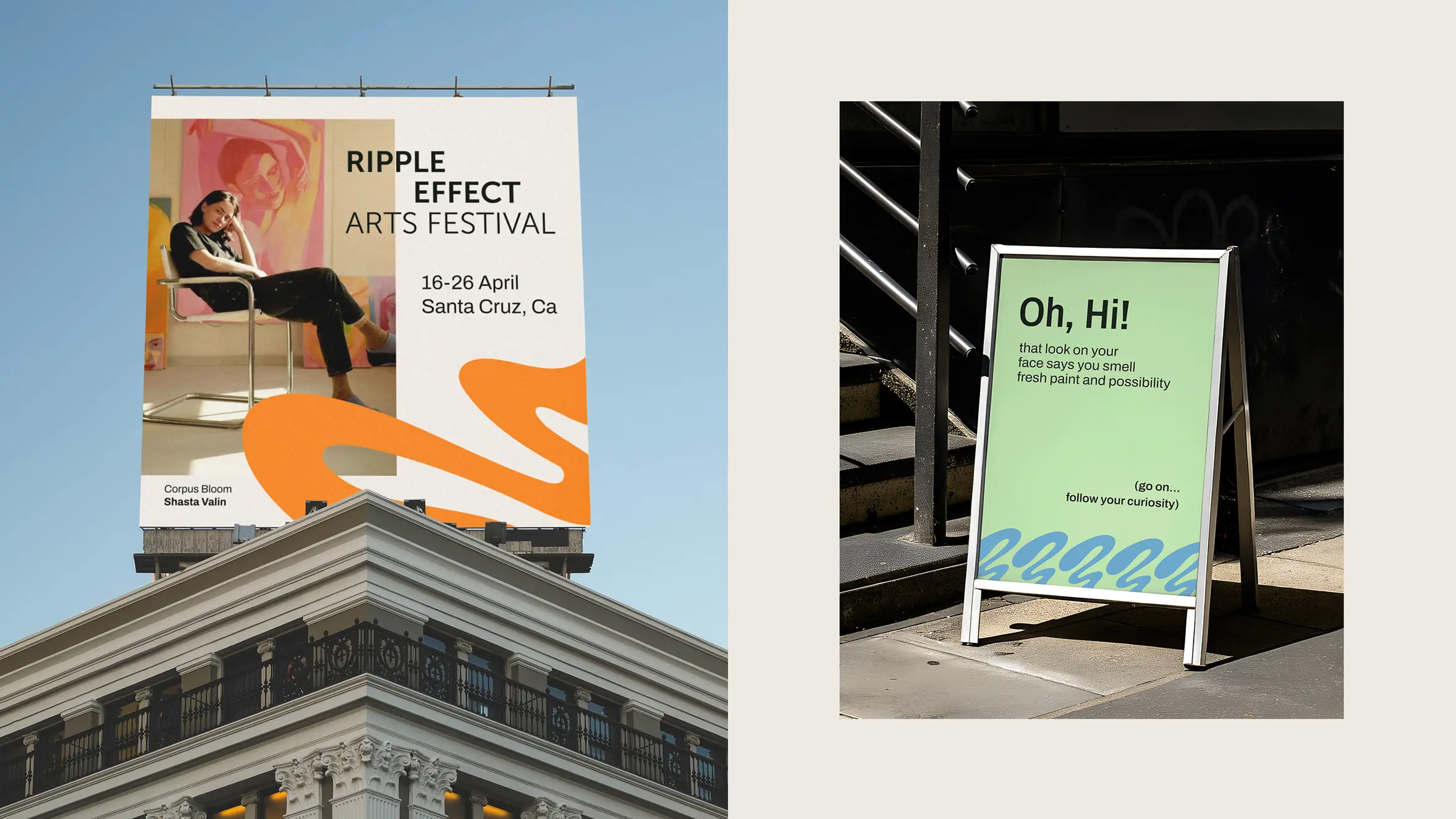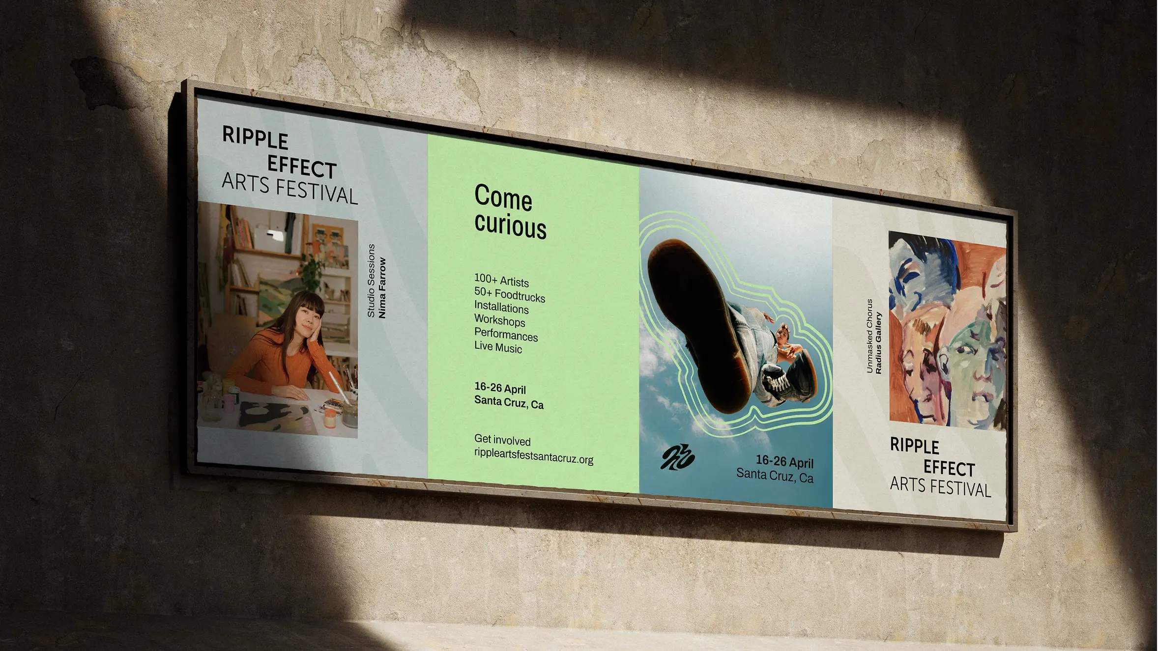 Sköna built a system designed to connect, not contain. We developed a brand essence, Creative Current, that reframed the festival as a living network, where participation builds energy and collaboration compounds impact. Ripple Effect becomes the connective infrastructure that links artists, institutions, and neighborhoods, encouraging audiences to ‘be curious’.
