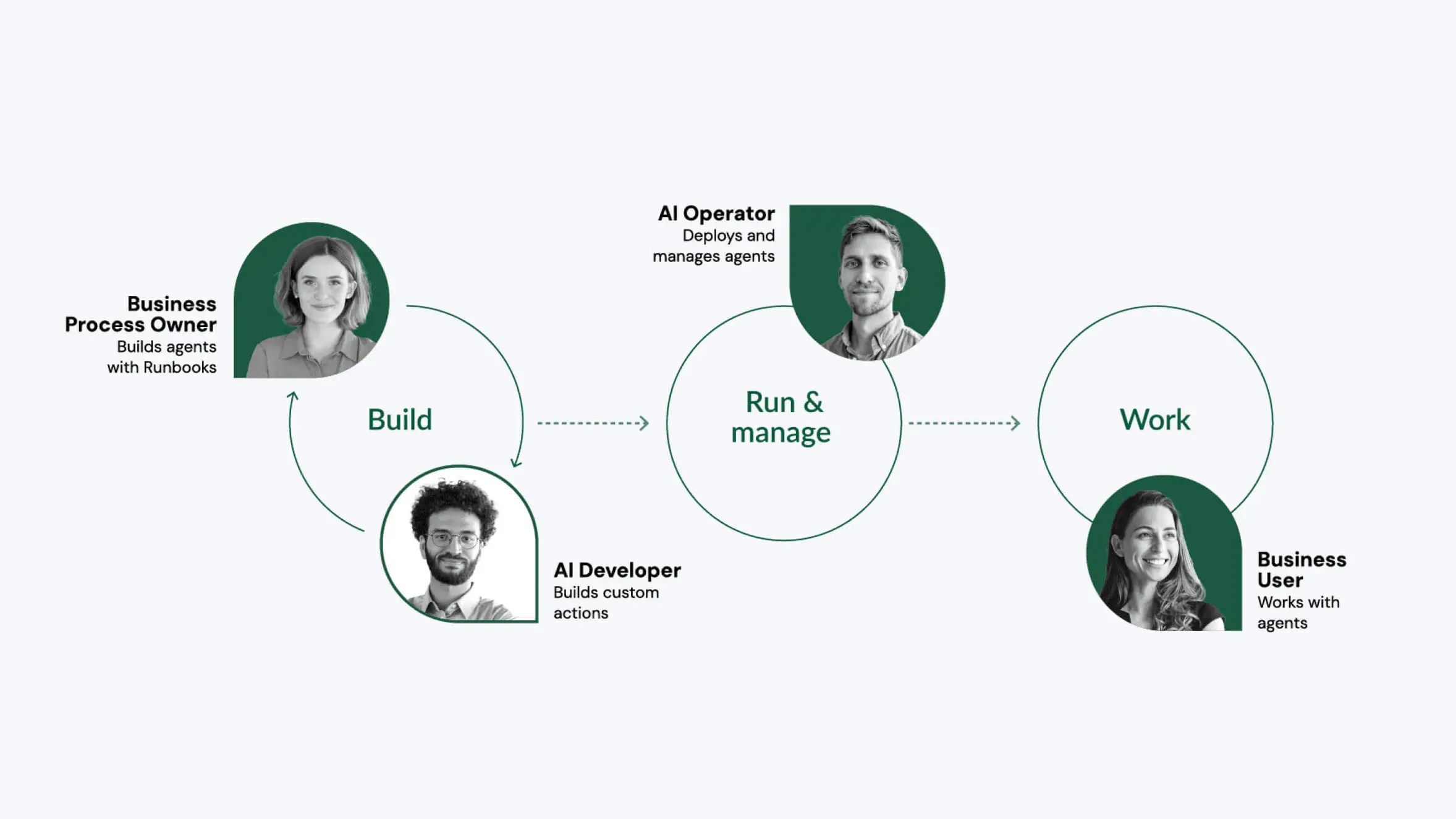 Sköna developed a comprehensive visual system with innovative AI-generated patterns and imagery. The design balanced soft curves with sharp arrows, symbolizing the speed and technical precision of AI, grounded by the organic, human needs it supports. This visual dichotomy, anchored by a primary forest green palette, reinforced a trusted brand as both enterprise-grade and deeply human-centric.
